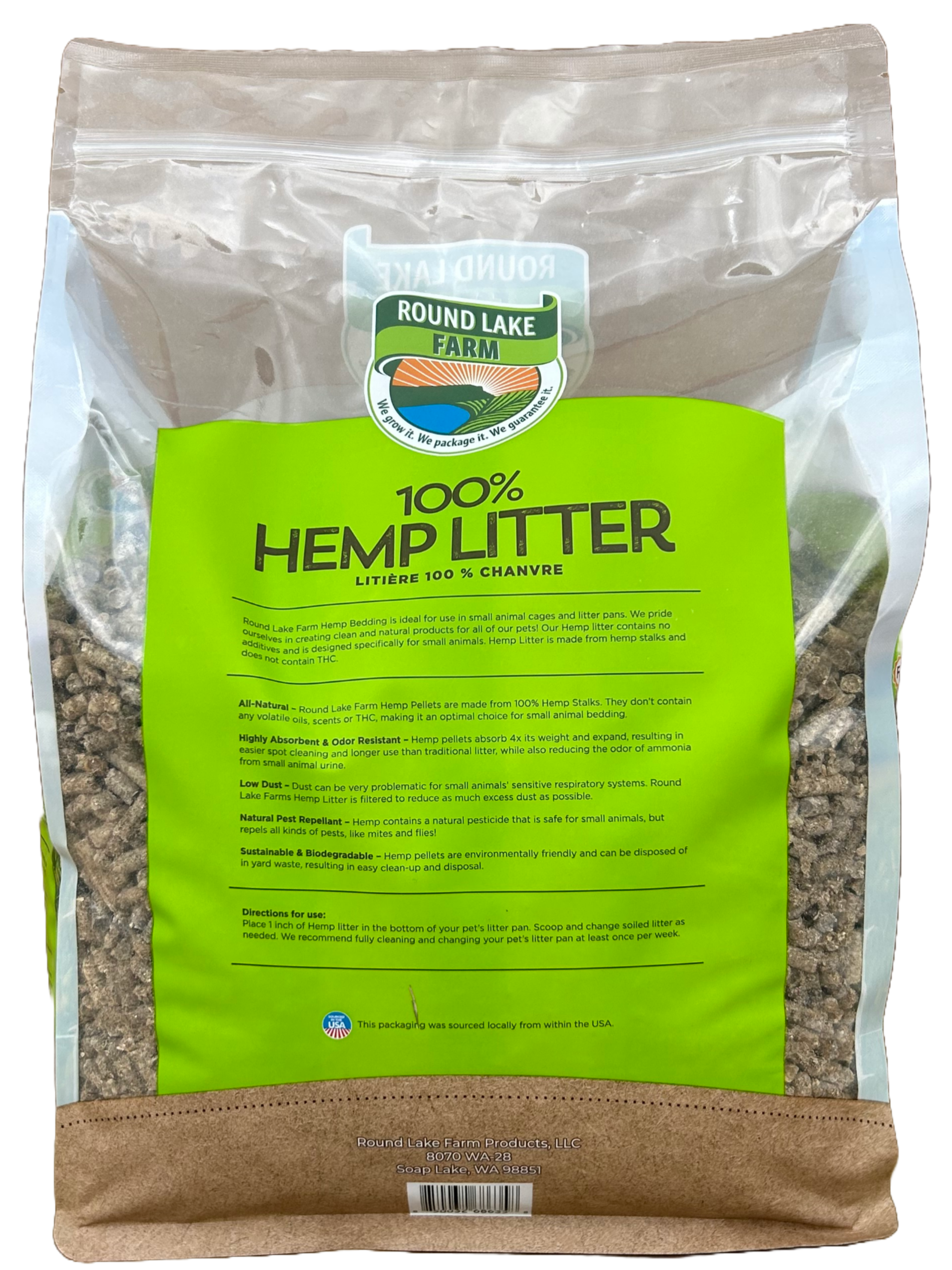 | Round Lake Farm Hemp Litter is an ultra-absorbent and odor resistant bedding made from hemp stalks. Hemp is safe for use as small animal bedding and offers several benefits: All Natural, Highly Absorbent, Odor Resistant, Low-Dust, Natural Pest Repellant, Sustainable & Biodegradable. |