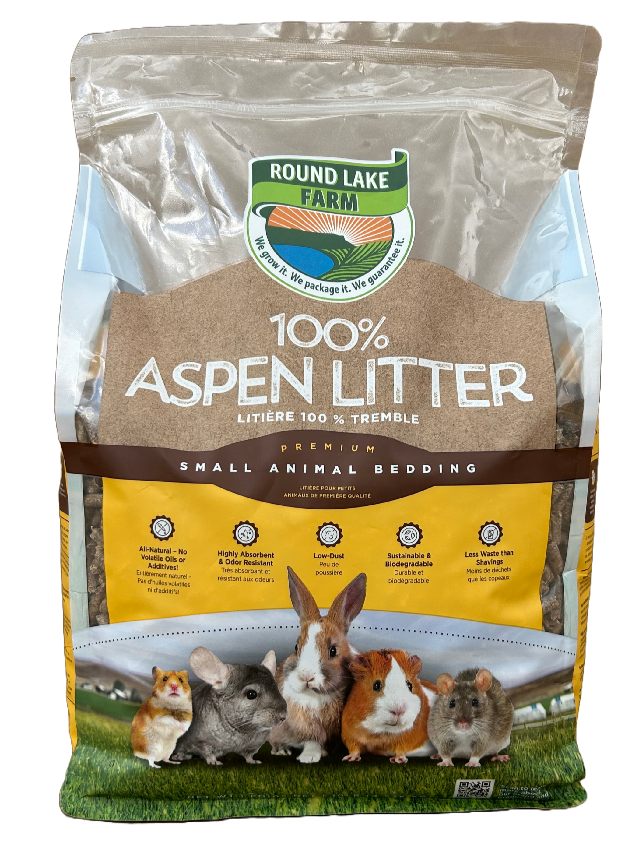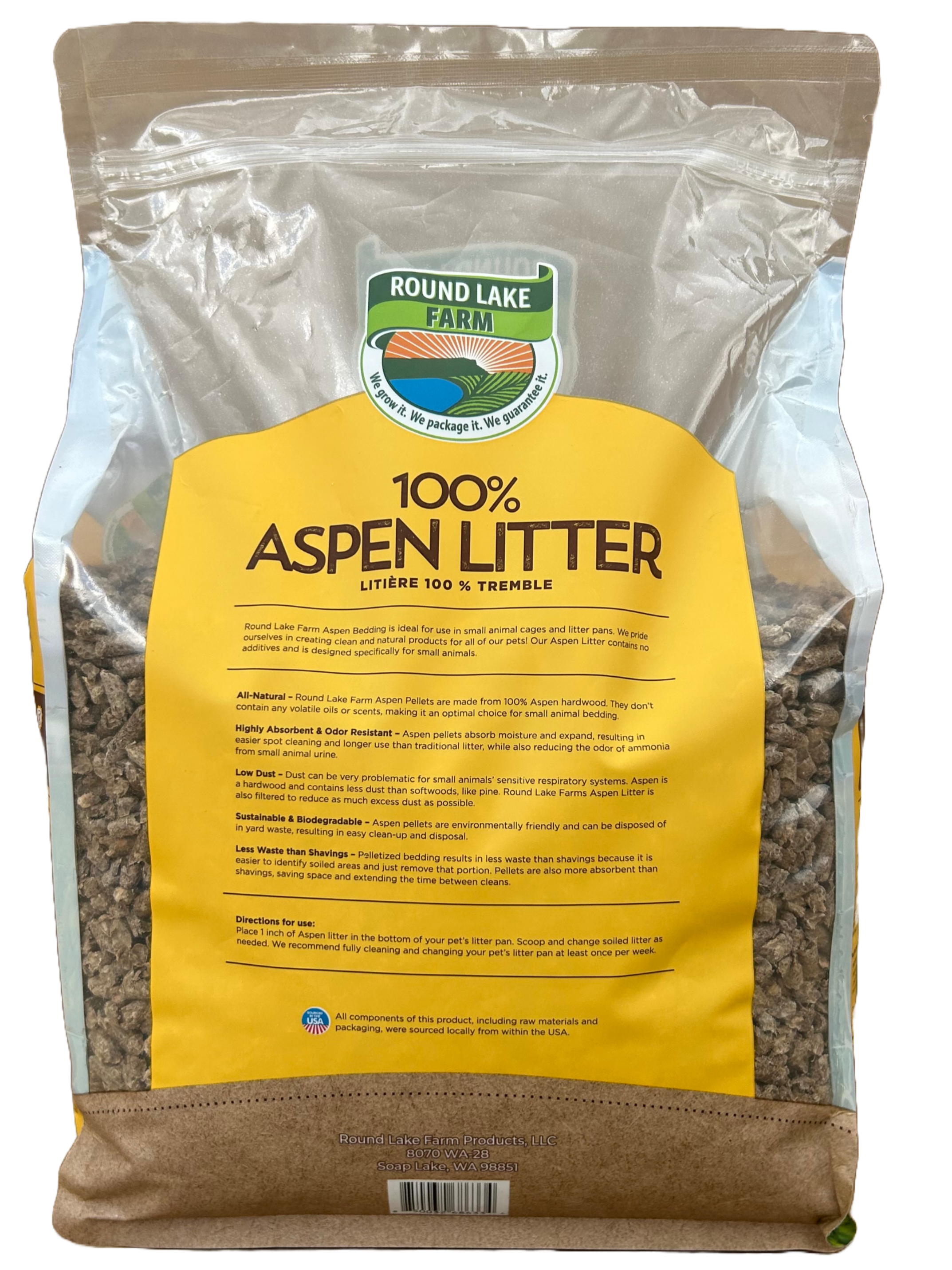 | Round Lake Farm Aspen Litter is an ultra-absorbent and odor resistant bedding made from 100% Aspen. This Aspen Litter contains no additives and is safe for use as small animal bedding and offers several benefits: All Natural, Highly Absorbent, Odor Resistant, Low-Dust, Sustainable & Biodegradable, and result in less waste than shavings! |